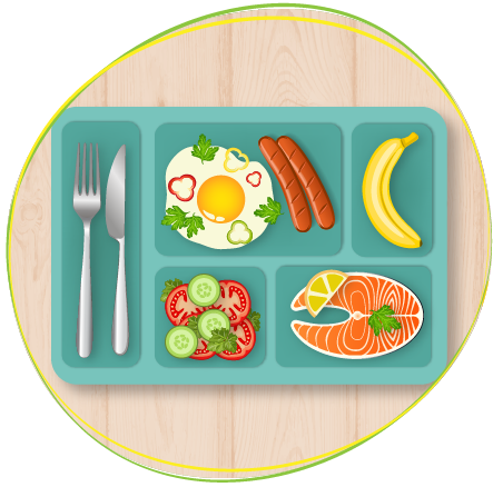 El colegio cuenta con un comedor amplio y agradable en donde los niños disfrutan de una deliciosa alimentación sana y balanceada de acuerdo al menú elaborado por la nutricionista bajo estándares de calidad.
